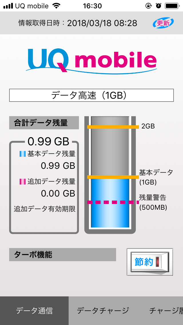 →これまでsoftbankでは毎月概ね3~4Gbytesを消費していたのですが、UQモバイルだと2Gbytesのプランでやりくりできそうです。